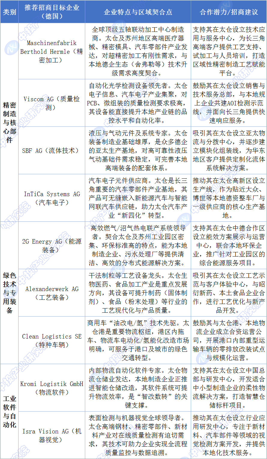 起首,焦点标的目的正在于:一是强化高端根本工艺,可沉点对接正在沉型机床升级、大型动力系统(如2G Energy的热电联产正在工业园区的使用)、轨道交通配备的细密部件(如自创德国经验)以及顺应严冷天气的工程处理方案方面有特长的德国中小企业,从中投财产研究院拾掇的正在华德企名录能够看出,可沉点对接正在高精度五轴加工核心(Maschinenbrik Berthold Hermle)、从动化光学检测(Viscom AG)等范畴具有全球带领力的德国企业,供给从手艺验证、本土化适配到市场导入的全周期专业办事。